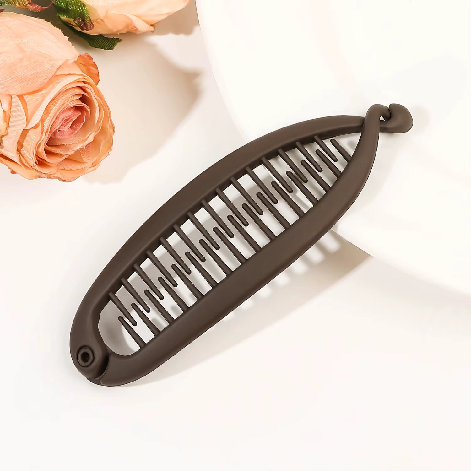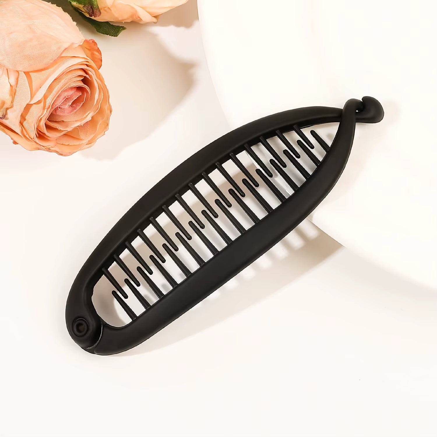 Hairmony Banana Clip, is designed to hold your hair with comfort and grace. Its sleek, curved design gently secures your strands without pulling or breakage, making it perfect for all hair types — from fine to thick.